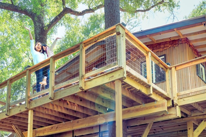 The choice is yours – hop on the pontoon boat for a quick ride down to the Treehouse to be dropped off or paddle your way down river to the Treehouse in single or tandem kayaks.