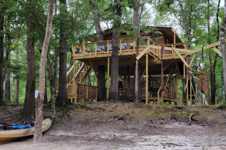 This unique adventure is something you can't experience anywhere else. Our 2 bedroom Treehouse sits on a private 48 acre island in the middle of the Waccamaw River just 7 miles outside of North Myrtle Beach, SC. You will enjoy the short 15 minute paddle down the river lined with beautiful bald cypress trees and southern live oaks covered in Spanish moss. Once at the Treehouse you can relax in one of the rocking chairs on the top deck, enjoy your packed lunch and drinks or explore the area on foot or kayak. Feel free to stay at the Treehouse or explore the river for the full 3 hours or come back earlier if you desire.
