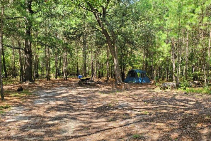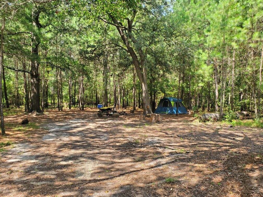 We have several spacious Wooded Campsites located across the road from our Outpost on the river. You can drive your vehicle right up to the campsite and park. Each campsite has a picnic table, fire ring and trash can. There are charcoal grills, ash cans and portable restrooms located in the area of the Wooded Campsites.
