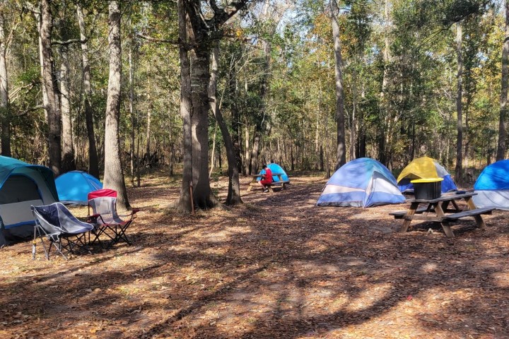 At our Outpost (where you park) we have the following amenities: restrooms, showers/changing rooms, hammocks, swings, stage, picnic tables, propane grills (propane supplied), fridge, ice maker, water dispenser, microwave, coffee maker, sinks and more. Just across the road from our Outpost we have 13 acres of wooded camping areas where your troop can set up camp for the night.